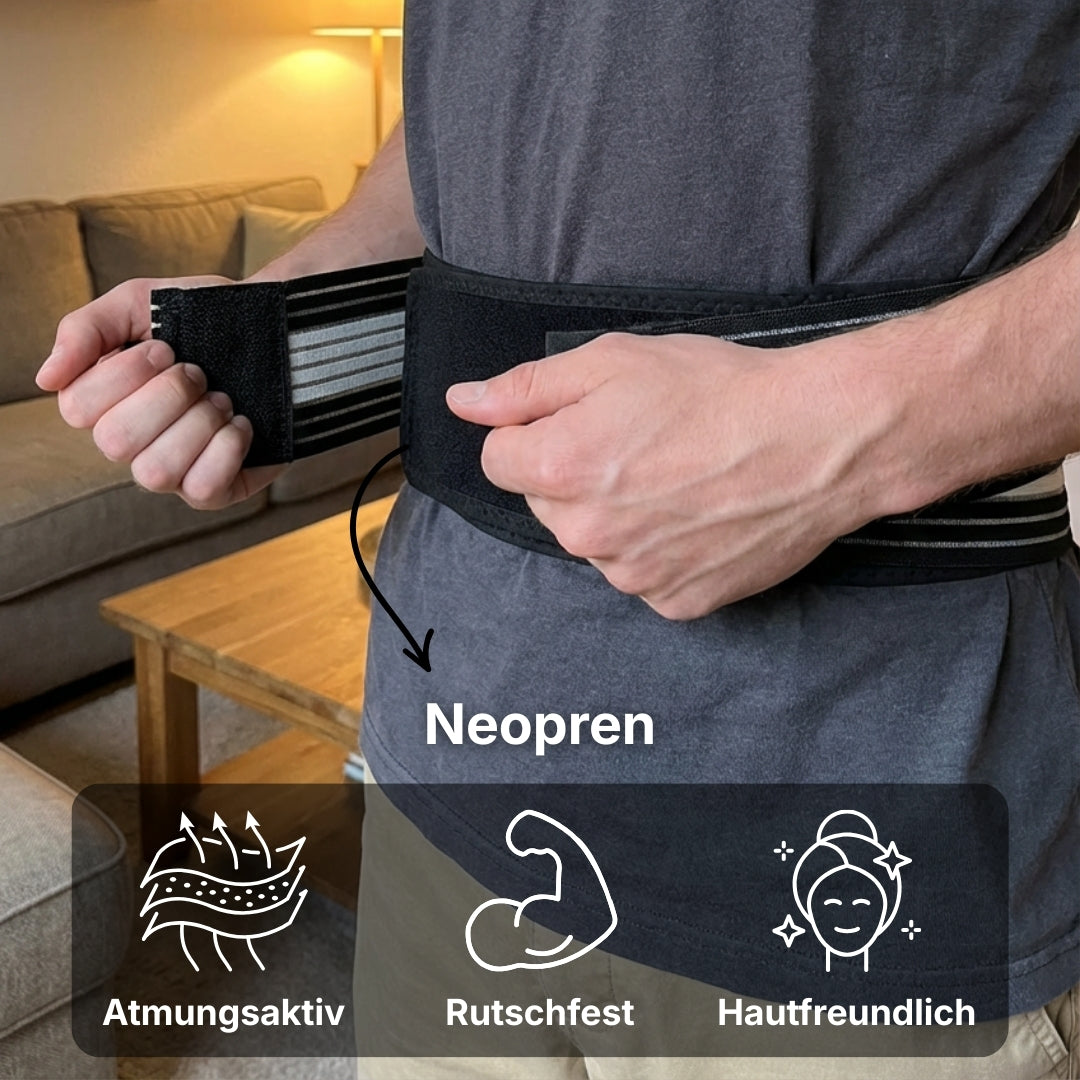 Anstatt nur oberflächlich zu entlasten, stabilisiert der Gürtel den Bereich, in dem viele Beschwerden entstehen. So kann die Belastung gleichmäßiger verteilt und der Rücken im Alltag unterstützt werden.